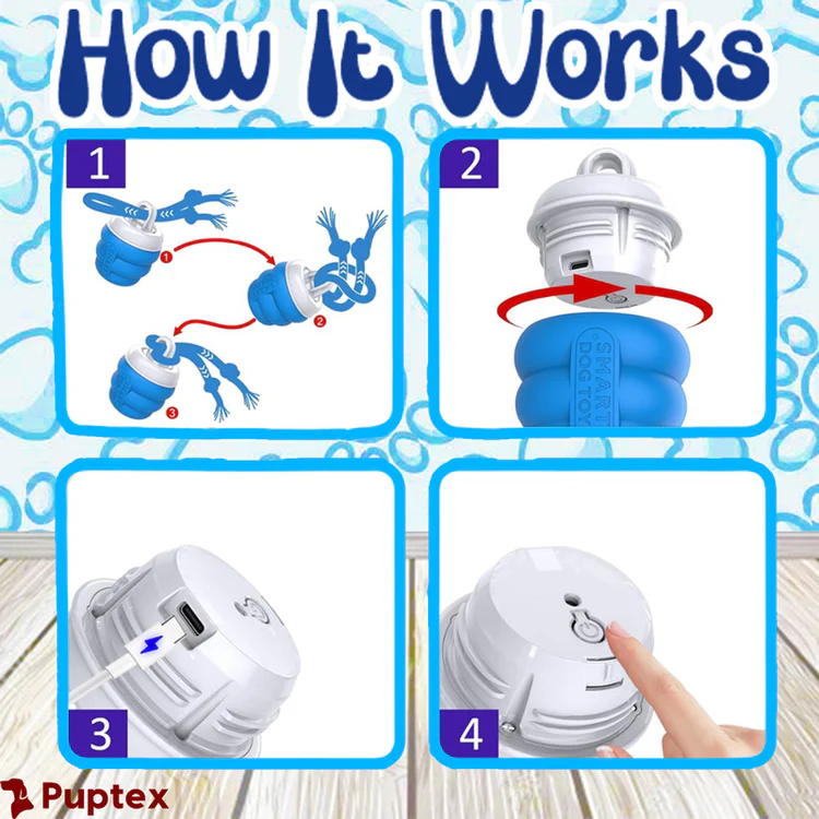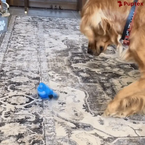 The interactive Spin Tug™ Dog Toy has a silent contact motion sensor! It automatically starts spinning once it detects movement & stops spinning when your doggo is taking a break from play time!
